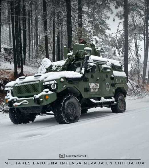 Las labores las efectuó personal de la 42 Zona Militar en municipios serranos como El Vergel, Balleza y Guadalupe y Calvo, como parte de operativos ordinarios de seguridad. Los recorridos se realizaron en vehículos tácticos tipo Ocelot y a pie sobre caminos cubiertos de nieve, pese a las bajas temperaturas y la limitada visibilidad. ⁣